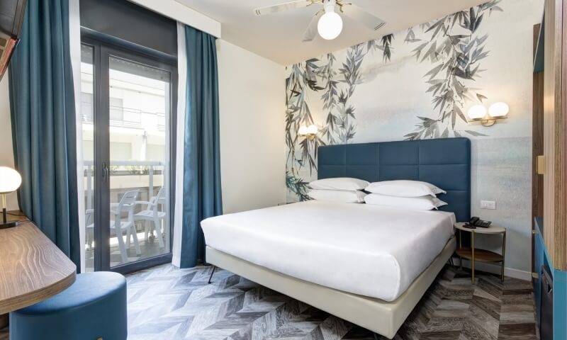 Il sole, il mare e la spiaggia formano il panorama perfetto da ammirare nel balcone frontemare delle nostre Camere Superior.
