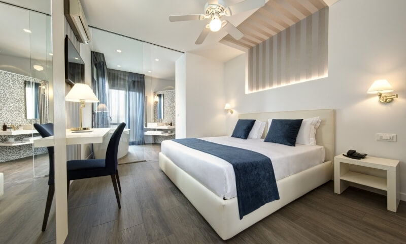 Le Junior Suite, sono camere completamente rinnovate dall’arredamento che alterna con eleganza i dettagli dello stile classico a quello moderno, senza mai rinunciare al comfort degli spazi che vi avvolgeranno.